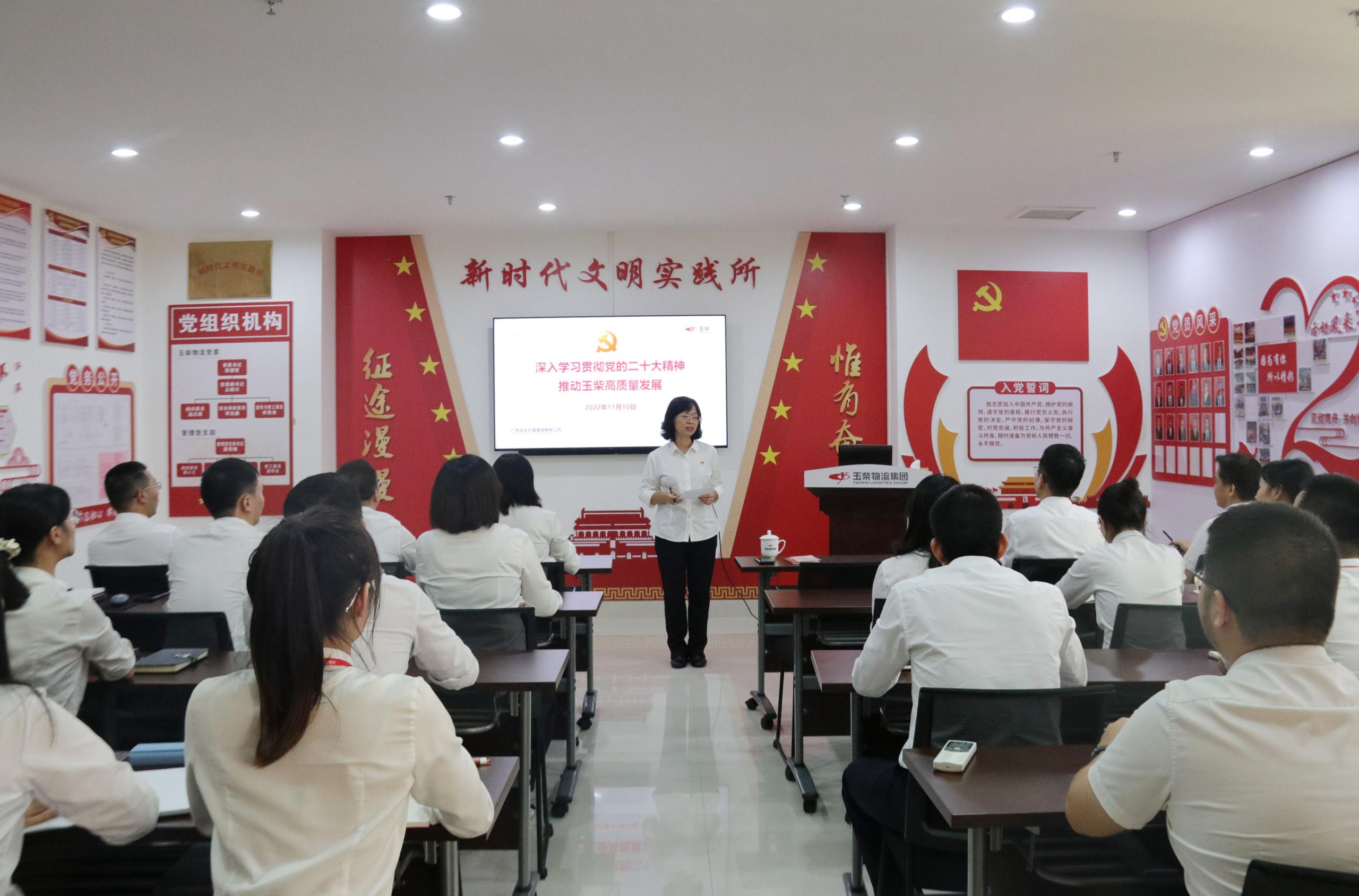 11月10日,玉柴集團黨委副書記關敏到玉柴物流集團宣講黨的二十大精神,同時調研和指導玉柴物流集團生產經營、黨建和人力資源工作。